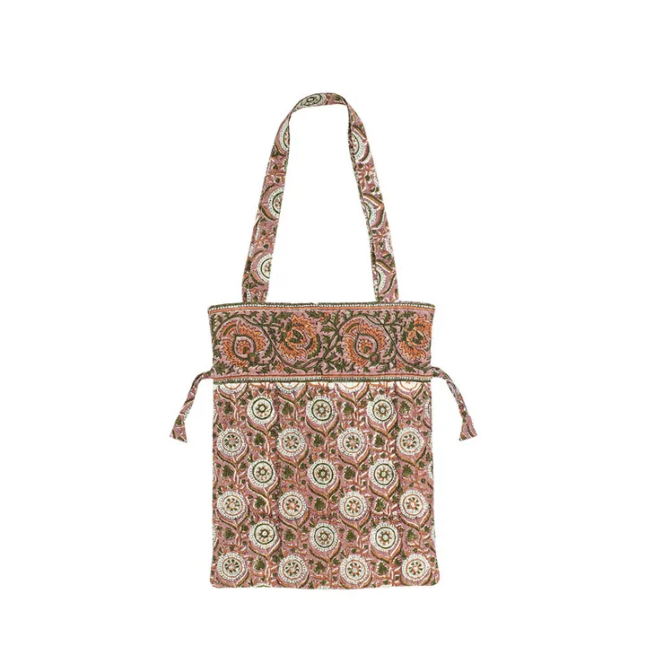 コンフィーブロックプリント キルト巾着トート ダスティピンク