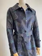 ボタニカル柄紬地シングルトレンチコートは、洗練された大人の女性にぴったりの一枚。独特の柄と素材感が、どこかエキゾチックな雰囲気を演出してくれます。軽やかな着心地で、季節の変わり目のちょっと肌寒い日にもぴったりです。 程よい張りが感が紬らしさを感じながらも、上品な光沢感と奥行きのある色使いに大きめボタニカル柄が、着る人の魅力を引き立ててくれます。シングル仕様なので抜け感のある軽やかなスタイリングが楽しめます。 今までにない個性的で華やかな一枚をお探しの方におすすめです。 長めの着丈のすっきりとしたシルエットが 着こなしのバランスを美しく見せてくれます。 しっかりとした織りの紬ながらも趣きのある風合いと軽さが、これまでのトレンチコートは重いというイメージをくつがえしてくれます。 ワンピースにもパンツにも合わせやすく様々な着こなしの幅が広がります。 シンプルなデザインなので長く愛用できるアイテムです。 熟練の職人が一着ずつ手作業で丁寧に仕上げています。 後ろの裾にかけて施されたプリーツやベルト通しのこだわりのディテールが、 洗練された印象を与えてくれます。
