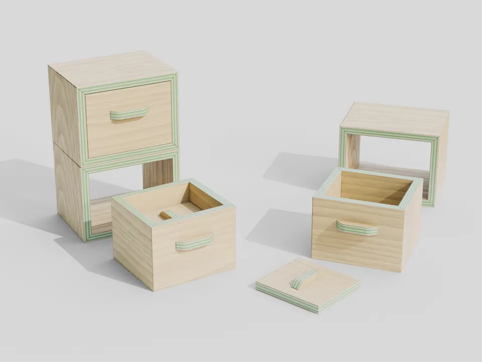 【森を育む世界唯一のストライプ】 多目的ストッカー (小サイズ) 若草萌黄色(ライトグリーン)