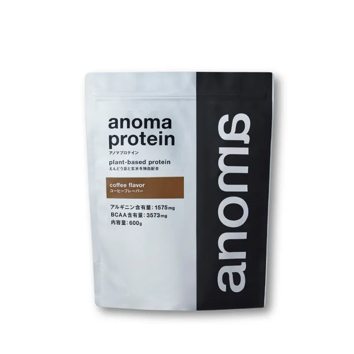 「自然な甘さとおいしさ」 anoma独自の技術で、人工甘味料や砂糖を使わずに天然甘味料のみで自然な甘さとカラダへの優しさを実現。 本格素材の味付けで、プロテインなのに毎日飲めるおいしさを実現しました。 「アスリートも使う高機能 BCAA4000mg、アルギニン1500mg以上配合」 ピープロテインと玄米プロテインの独自比率配合により、1食30gあたりタンパク質20g以上を実現。 必須アミノ酸BCAAやアルギニンの高配合とエネルギー変換率の高いMCTオイルも配合。ハードなトレーニングを行うアスリートの仕様にも耐えうる高機能な商品です。 「安全性にこだわった原材料」 anomaは、アレルギーリスクが最も少ないとされるえんどう豆を使用し、さらに遺伝子組み換えリスクが最も低いとされる欧州産えんどう豆に厳選。 玄米タンパクも除草剤が使用されていないものを使用。 安全性にも徹底的にこだわりました。 また従来のプロテインに使用が多い人工甘味料、保存料、着色料、乳化剤は一切使用していません。 「環境負荷の低い粉末栄養食」 ピープロテインは動物性のタンパク質で作られるプロテインと比較して、より少ない土地や水の使用量で生産することが可能です。私たちは「持続可能な食を提供する」というミッションのもと、国連の定めるSDGsの考えに賛同し、より環境負荷の少ない粉末栄養食を開発しています。