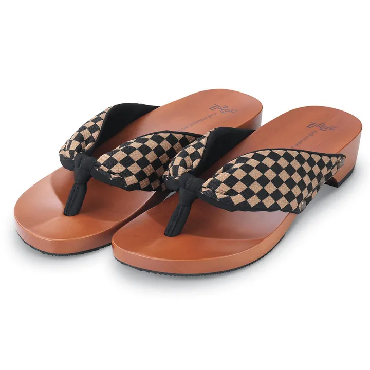 ブラウンと黒の格子模様がオシャレ。 和風な市松模様にも、洋風なダイヤ柄にも見えるデザインはコーディネイトに馴染みやすくおすすめです。 浴衣・作務衣はもちろん、デニムパンツやハーフパンツなどのコーディネイトにも。 男女問わず履いていただけるユニセックスなアイテムです。