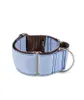 薄いブルーを基調とした生地に黒の繊細な幾何学模様がアクセントとなり、上品で洗練されたデザインに仕上がりました。 おしゃれなお散歩を楽しみたい方や、シンプルながらも愛犬の個性を引き立てるスタイルを求める方におすすめ。 日常のお散歩から特別なシーンまで。 高品質な素材を使い耐久性が高く、柔らかな手触りで愛犬の首にも優しいつけ心地です。日常使いにもぴったり。 ? マーチンゲールカラー 幅が4cm、5cmと通常よりも広め。頭と首が細長く通常の首輪では抜けてしまうハウンド犬種に、特にぴったりのハーフチョークタイプです。? ハウンド系犬種以外でも幅広くお使い頂けます。頭からかぶせて着用するので、頭のサイズも必ずご確認ください。 ? 素材 裏地:ポリエステル100%リボン(エコテックス認証取得)表地:ポリエステル100%?