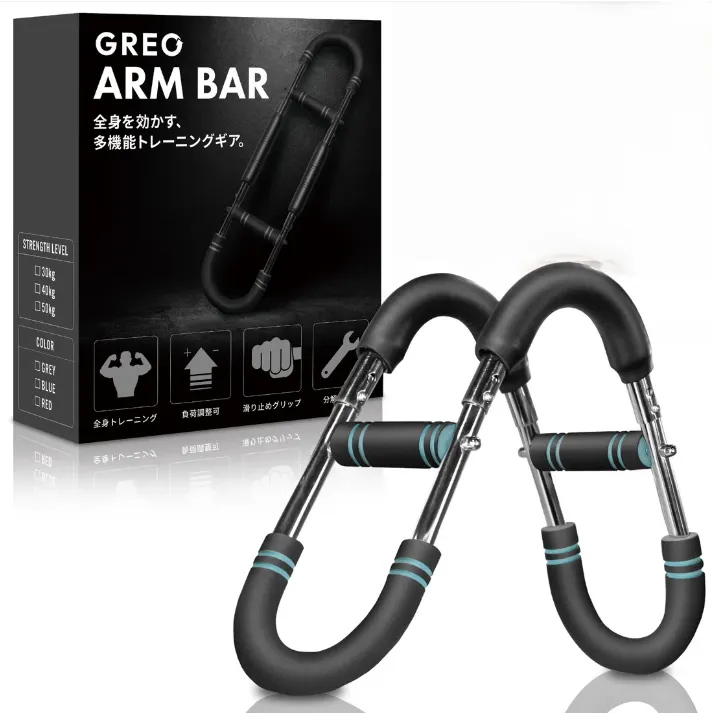 【自宅で本格全身トレーニング|胸筋・背筋・腕・腹筋に効く多機能アームバー】 ■選べる3カラー×3重量 GREO(グレオ)アームバーは、自宅トレーニングで本格的に全身を鍛えたい方のために開発されたトレーニングギアです。 大胸筋・胸筋・広背筋・腹筋・上腕二頭筋・肩・前腕・内転筋まで、これ一本で効率よく全身を鍛えることが可能。 自重トレーニングや宅トレの強度を一段階引き上げ、ジムに行けない日も妥協のないワークアウトをサポートします。 ■ 3段階負荷調整+3種の重量タイプで自分だけの強度に スプリングの着脱で簡単に3段階の負荷調整が可能。 さらに負荷別の30kg・40kg・50kgタイプをご用意し、合計9パターンの強度から選べます。 その日の体調やトレーニングメニューに合わせて、理想の負荷で全身を刺激できます。 ■ グレー・ブルー・レッドの選べる3カラー 機能性はもちろん、見た目にもこだわったスタイリッシュなデザイン。 部屋の雰囲気やモチベーションに合わせてカラーを選べるのもポイントです。 ■ 安全・快適|滑り止めグリップ&分解収納 グリップ部分は滑りにくい凹凸仕様で、手汗をかいても安心。 しっかりと力を込めてトレーニングでき、安全性を高めます。 さらに、工具不要で分解できるため、省スペースに収納可能。持ち運びにも便利です。 ■ こんな方におすすめ! ・ 自宅で本格的な筋トレをしたい方 ・ ジムに通えない日も全身を鍛えたい方 ・ 自分のレベルに合わせた負荷でトレーニングしたい方 ・ 簡単に収納・持ち運びできる器具を探している方 ■ 商品仕様 商品名:GREO(グレオ)アームバー 負荷:30kg / 40kg / 50kg(各3段階調整可) 材質:スチール、PVC(グリップ部) カラー:グレー / ブルー / レッド ※トレーニング時は周囲の安全を確認し、無理のない範囲でご使用ください。 ※初めての方は軽い負荷から始めることをおすすめします。
