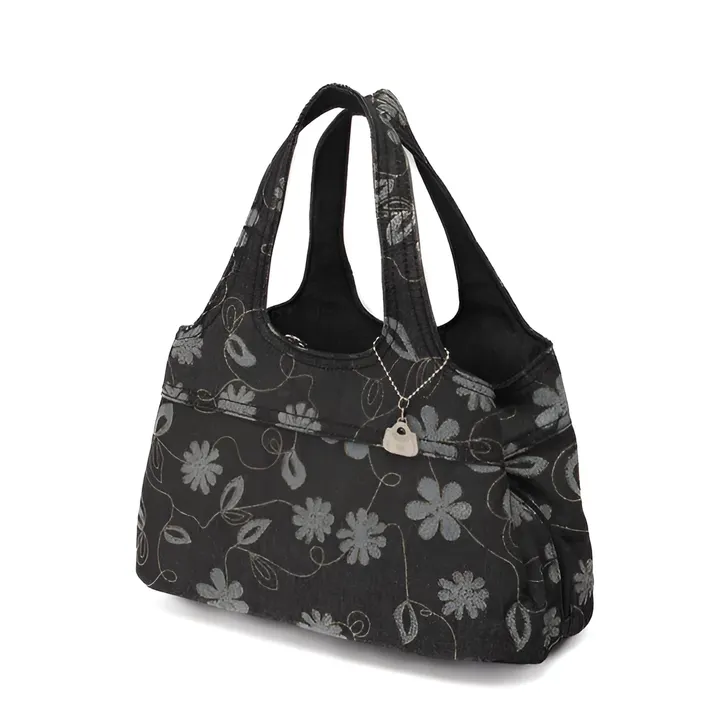 デニム地に花模様をプリントしたハンドバッグ SM16742803