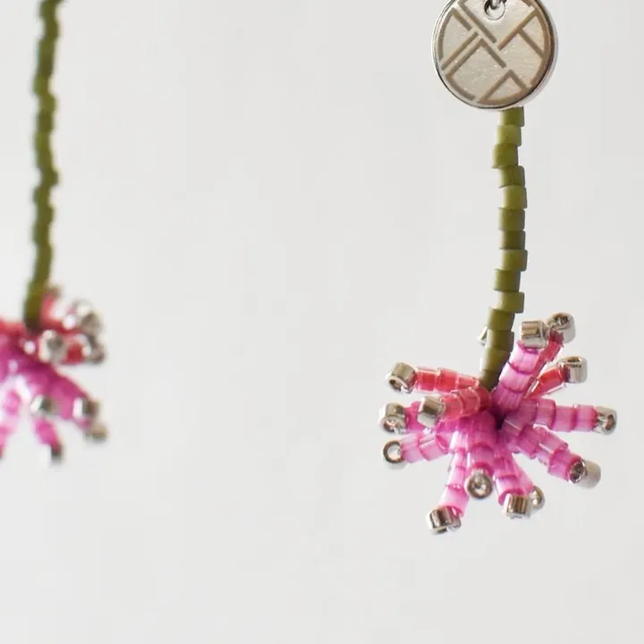 羽状の葉の先から巻きひげを出して からまりつき その根元には可憐な花と 小さなエンドウ豆をつけます 幼いころにその豆をむしって おままごとをしていたことを思い出します material SILVER925(ピアス金具)、SILVER925 ロジュームメッキ(イヤリング金具)、ガラスビーズ、銀糸、真鍮、チタン、フェルト、シリコン *シルバービーズはパラジウムメッキ加工を施したものを使用しております *取り付ける金具によって、使用している金属が異なります size 約13x35mm weight 約0.7-1.8g *取り付ける金具によって、重さが異なります *CACICOの商品は全て1点1点制作しているため、個体差があり、商品写真と差がある場合がございます。ご了承の上、ご購入ください。 *金属アレルギーの方はご使用をお控えください *受注生産のため、ご注文確定後1週間〜10日以内に商品を発送いたします