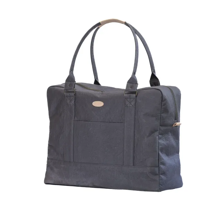 【和紙雑貨】トラベルバッグ 旅行用バッグ 旅行1泊2日 1泊2日程度の荷物を収納することが出来、背面のキャリーバー通しを使用すればキャリーバッグの上に乗せることが出来ます。 バッグ類は和紙ならではの軽さと風合いで、他とは被らない個性豊かな鞄です。 兵庫県多可町の特産品である杉原紙を表地、播州織を裏地に使用。裏地に使用することで丈夫になり、和紙特有の軽さを活かしています。 ロゴネームやハンドル部分などで使用している革も多可町で穫れた鹿の革を使用しています。 生産、素材ともに【made in japan】でものづくりを行っております。 杉原紙は100%自然由来の原料で出来ており、鹿革も獣害駆除で穫れた鹿の革のみを使用しています。 ある程度の重さに耐えられるような芯材選びや縫い方はこだわっています。