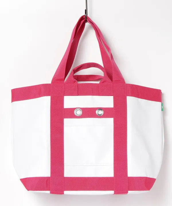 ~ RUSTICターポリンシリーズ~ 横断幕用のターポリンの端材・残材で作ったトートバッグ。堅牢なターポリンは耐久性・耐水性・防汚性に優れ、普段使いからヘビーデューティーまで広くシーンをカバーします。数百種ある生地の中からバッグに最適な、軽くて腰のある素材を選びました。自立する、ほど良い張りが使い勝手を高めます。横断幕の裏面を表に使用しているので、表面は白、裏面には印刷が入っている場合がありRUSTICの人気のヒミツです。 ■お泊り旅行やキャンプへお出かけのとき、何でも気にせずどしどし放り込める大容量のトート。置けば自立します ■外ポケット1、内ポケット1 ■H40cm W54cm D20cm ハンドル60cm ■日本製