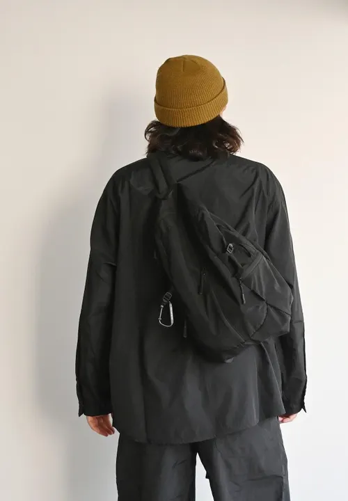 ♦軽量設計・構築的シルエットのスリングバッグ♦ ●本体内装:メッシュポケット×1 オープンポケット×1 コードストラップ付き ●外装:ジッパーポケット×2 ●カラビナ×1 ●ワンタッチで着脱可能アタッチメント 軽量ナイロンを使用し体になじむように構築された、シンプルながらも立体感のあるフォルム。 フロント中央には、内装に直接アクセスできるジッパー有り。 必要なモノをクイックに取り出し可能◎ 両際にはジッパーポケットを備えており、小物類を分けて収納可能。 バッグ内部をスッキリ整理できます。 メイン収納部分はほどよい容量で、デイリーに必要な荷物をしっかり収納可能 さらに生地が柔らかい為、コンパクトにたたんで持ち運びやすい。 ショルダーベルトは長さ調整可能。 ワンタッチで着脱可能なアタッチメントパーツを使用。 軽量設計の為、長時間の使用でも負担が少なく 旅行やアクティブなシーンにも信頼できるスリングバッグです。 生地は、表面にナチュラルなワッシャー加工を施した [#01 YBK] と リップストップクロスを使用した [#03 YLBK] の展開です。 【NoiR 販売価格について】 弊社設定上代(税込価格)での販売のご協力をお願いいたします。 また、商品に対してのクーポン等はご遠慮いただいております。 ショップ全体でのクーポン等は問題ございません。 ご理解・ご了承のほどお願い致します。