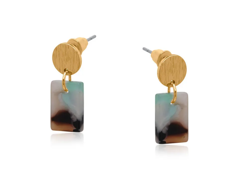 4045 Aurora プチレジン スクエア スタッドピアス GREEN/GREY