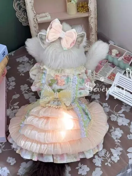 春夏新作、3シーズン渡り着用可能! 春風に吹かれ、爽やかなピーチソーダを頂きましょう♡ パウダーピンクのシルクと花刺繍を飾り、まるで花の妖精の様にGOOD もししっかりで寒さ対策したい場合、オプションで裏地をボアに変更することも🉑 ※春夏商品はオススメしません。 また、ドレスと同じ生地でヘアアクセサリーも揃えば、より可愛さ↑↑ 【ヨーロッパの美意識を受け継ぐプレミアムペット用品をご提案】 他にないユニークなゴージャスデザインで、世界一可愛い存在に ふんわりレースとリボンに包まれて、ふわっと広がるフリルを贅沢にあしらったロリータ風ペット洋服は、まるで夢のお城から舞い降りたような特別な一着。 上品な色合いとディテールにこだわった仕立ては、フォーマルなお出かけや写真撮影にもぴったり。 動きやすさと着心地にも配慮し、快適に着こなせる。 あなたの愛する子が、唯一無二なお姫様に? 洗濯説明: 高温によって変形する可能性がありますので、なるべく温水か冷水で手洗いすることがおすすめです。 レースを沢山使われ、繊細に作られたため、機械洗いは柔軟なモードを選択する必要があり、日焼けすることをしないようお願いします。 また、人の洋服、特に赤ちゃんの服と混洗することはおすすめしません! ■Pet@SevenLy 愛する家族に、上質を。 私たちSevenLyは、ヨーロッパの美意識を受け継ぐプレミアムペット用品専門店です。 こだわりのあるペット用具、洗練されたラグジュアリーアクセサリー。 すべては「大切な存在にふさわしいもの」を追求して選び抜かれました。 <特徴> 信頼の品質    :安心基準をクリア、品質が安定 気品あるデザイン :ヨーロッパの美意識を受けたエレガンスの美 特別なセレクション:他にないユニークな逸品 ペットは、かけがえのない家族。 SevenLyは、日常に選ばれる消耗品ではなくラグジュアリーな体験をお届けします。