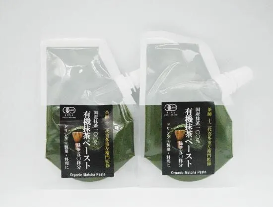 茶道具不要で手間不要、着色料不要の有機抹茶ペースト。有機認証、マタニティフード認定等を取得。着色料無しで加熱しても緑色の抹茶菓子・抹茶料理等が簡単に作れます。