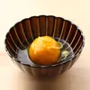ぎやまん陶はガラスのような透明感ある質感と漆器を思わせる深みのある風合い、そして菊の花をモチーフにした優美なデザインが共存した器です。とろりとした釉薬のかかり具合はまさにガラス細工のような光沢があり華やかな雰囲気をまとっています。見た目の繊細さとは裏腹に、実用性はかなりタフ。硬質で丈夫な磁器の器ですので、温める程度の電子レンジや食洗機も使えます。