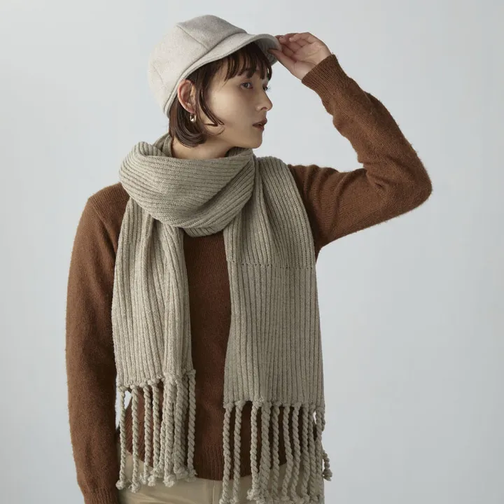 2種類のリブを組み合わせたこだわりのフリンジマフラー BE(ベージュ)