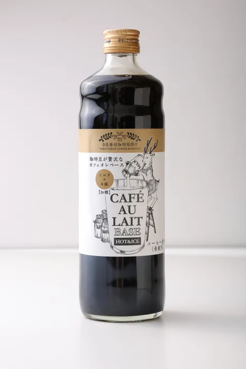 【珈琲豆が贅沢なカフェオレベース】 CAFE AU LAIT BASE 珈琲豆をたっぷり使った贅沢なカフェオレベースです。ミルクで4倍に薄めておたのしみください。 無糖タイプと、あっさりした甘さの加糖タイプがあります。 内容量:600ml