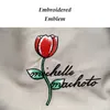 裾には、チューリップのブランドエンブレムの刺繍があり、エレガントな仕上がり。