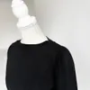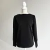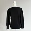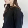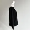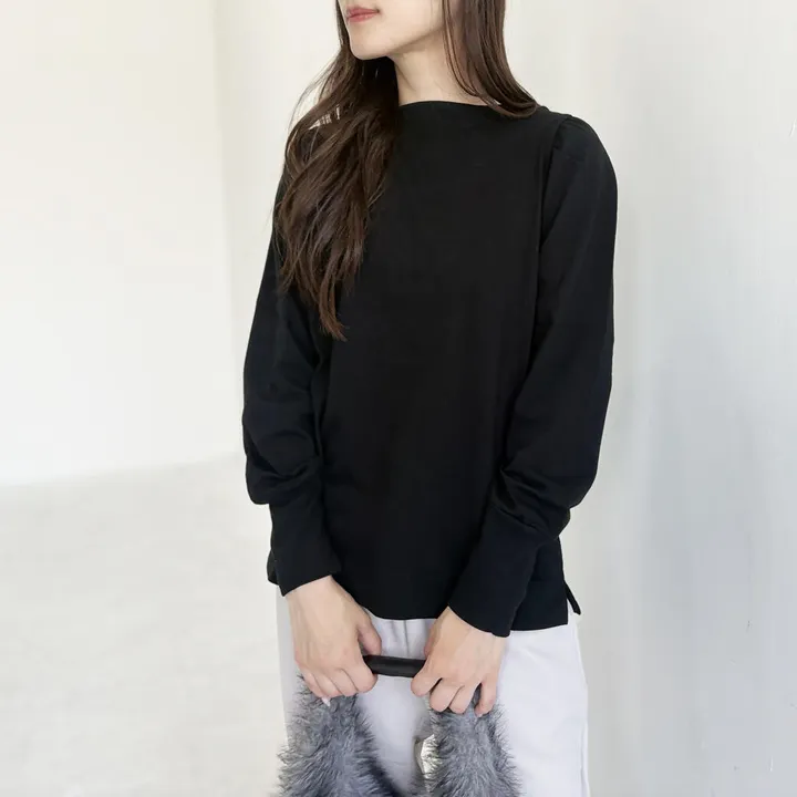 【日本製】USAコットン ギャザーショルダー長袖 裾スリット プルオーバー ブラック