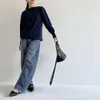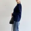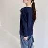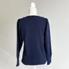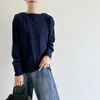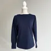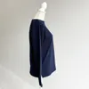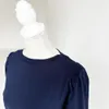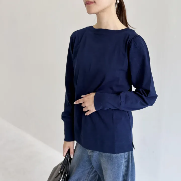 【日本製】USAコットン ギャザーショルダー長袖 裾スリット プルオーバー ネイビー