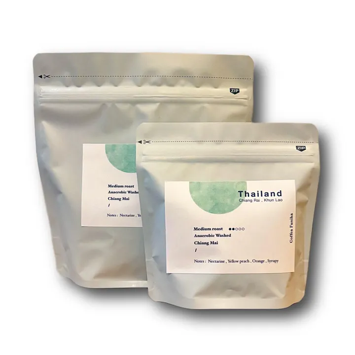 程よい発酵感があり、すっきりと綺麗な酸が感じられます。 冷めてくると黄桃のような甘みに加え、とろみを帯びた質感に変化します。 口に広がる風味が長く余韻として残り、満足感があります。 タイではスペシャルティコーヒーの生産はまだ少なく、タイ国内で消費されることがほとんどです。日本への輸出はかなり少なく、希少性があります。 チェリーの状態で48時間嫌気性発酵、その後果肉除去、水洗、ソーキング(水に浸ける)を行います。自作の乾燥用ドームの中で14日間除湿器を使用しながら常に空気を対流させ乾燥させてできたロットです。 苦味 ●◯◯◯◯ 甘味 ●●●◯◯ 酸味 ●●●●◯ 【フレーバーノート】 黄桃、ネクタリン、シロップのような質感 【生産者情報】 FARMER:スリさん REGION:チェンライ南西端 ウィエン・パ・パオ クンラオ村 PROCESS:アナエロビックウォッシュ VARIETY:チェンマイ ALTITUDE:1,100-1,300m