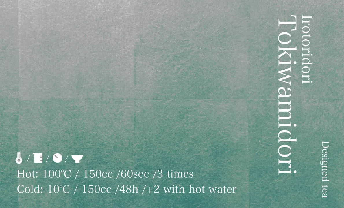 二種の早摘みの緑茶のブレンド若い芽が持つ強い力を感じるお茶 ベース:緑茶 Irotoridoriとは お茶単体でも、食事やお菓子と合わせても新しい発見があるお茶。 当店で提供しているお茶とお菓子のコースで出される特別なお茶が製品になったシリーズです。 ベースとなるお茶はそれだけでも美味しいお茶を使い、そこに新たな要素を加えてお茶を使った新しい飲み物を目指しています。 でも、飲んだらこれはお茶だと感じれることはルールとして守っています。 0.1g単位でブレンドしているので、パッケージば一回使い切りのもののみ。 水出しでもお湯出しでも両方楽しめます。