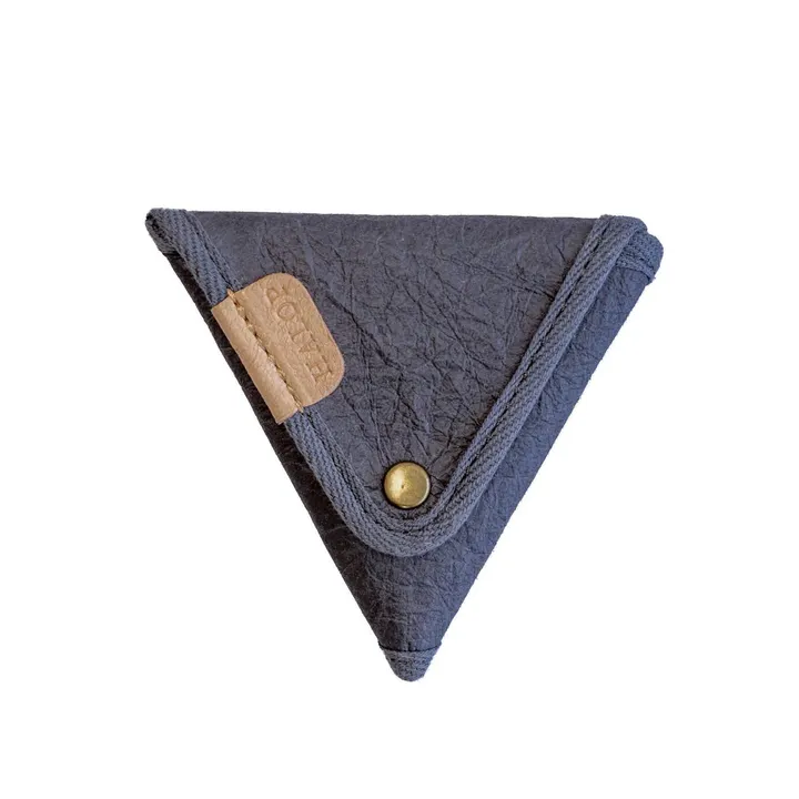 【和紙雑貨】トライアングルコインケース[焼印] コインケース 小銭入れ ミニ財布 ミニウォレット 2か所あるホックのどちらからでも開閉可能なコインケース。 兵庫県多可町の特産品である杉原紙と播州織を使用。 ロゴネームやハンドル部分などで使用している革も多可町で穫れた鹿の革を使用しています。 生産、素材ともに【made in japan】でものづくりを行っております。 杉原紙は100%自然由来の原料で出来ており、鹿革も獣害駆除で穫れた鹿の革のみを使用しています。 ある程度の重さに耐えられるような芯材選びや縫い方はこだわっています。
