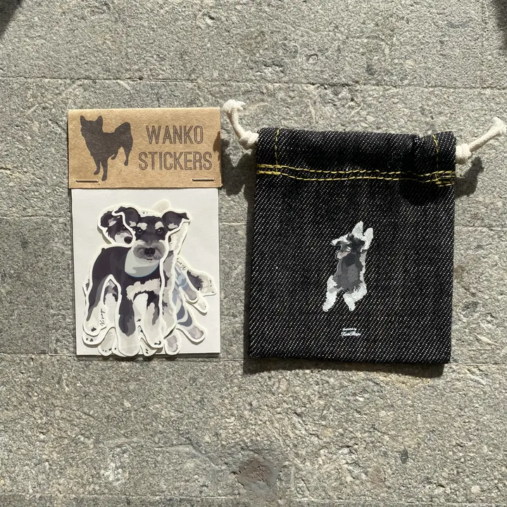【人気商品お試しセット】 ステッカー・ミニ巾着 送料無料 ミニチュアシュナウザー セット