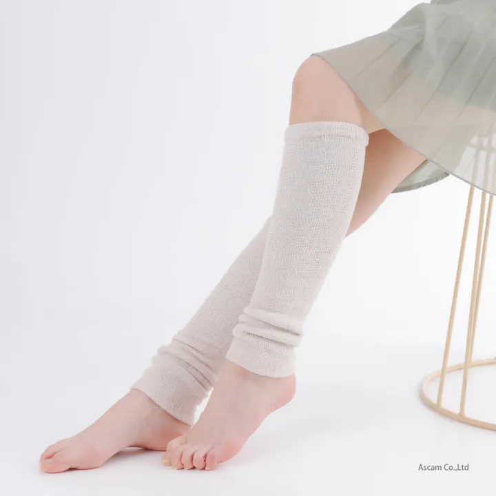 (サンプル)麻と炭の薄手レッグウォーマー|一年通して着用できる薄手二重編み|丈長め43㎝|日本製 【アイボリー】