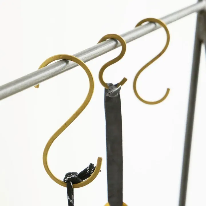 暮らしの様々なシーンで役立つ S 字フック。 ブラスは見た目の美しさが大きな特徴で、何かを掛けたり吊り下げる時にも雰囲気良くディスプレイできます。 ヴィンテージ感のあるブラスは、細かいところまで空間作りにこだわりたい方にもおすすめしたいアイテム。 BRASS(ブラス)とは真鍮のことで、shesayのBRASS製品はすべて職人によるハンドメイドで生産しています。 独自の質感や深みのある光沢が上品な雰囲気を醸し出し、使うほどに増していく風合いも真鍮素材ならではの特徴です。 年月の経過とともに、自分だけのエイジングを感じられる愛着のあるものへとなっていきます。