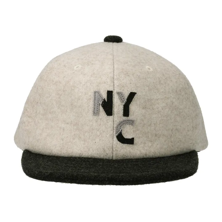 メルトン素材のアンパイアキャップ。バイカラーにしたNYC(ニューヨークシティ)のアップリケ。ボディとツバ、天ボタンも配色にしたビンテージスタイル。