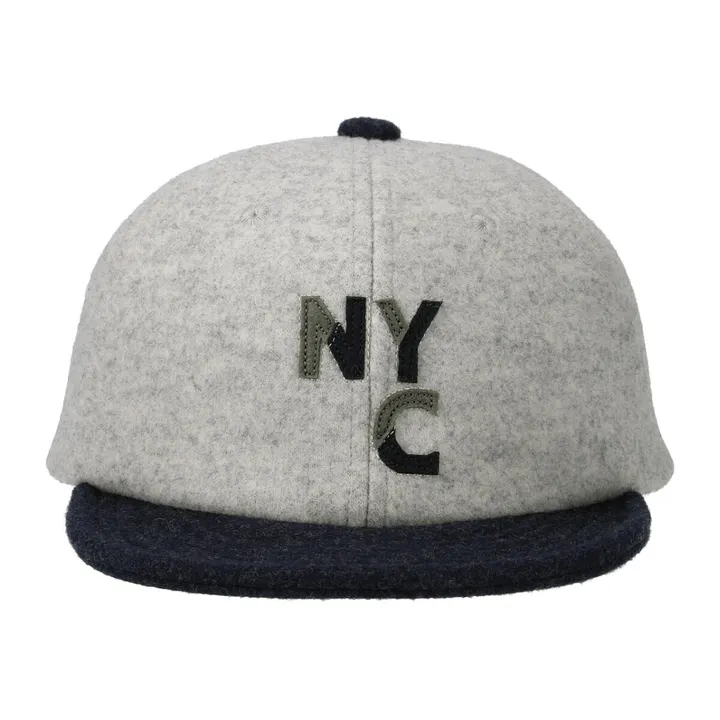 メルトン素材のアンパイアキャップ。バイカラーにしたNYC(ニューヨークシティ)のアップリケ。ボディとツバ、天ボタンも配色にしたビンテージスタイル。