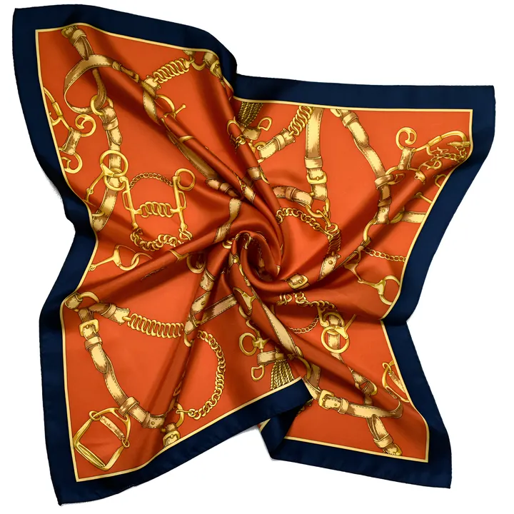 上品でクラシカルなベルト柄のプチサイズのシルクスカーフです。 旅行やお出掛け、仕事だけでなく、フォーマルな場にも首元を飾るアクセントとして最適です。 また、スカーフは首に巻くだけではなく、ターバンとして頭に巻いたりアクセサリーとしてカバンに巻くのもお薦めです。 首元が寂しくなりがちな春夏のコーディネートのアクセントや日焼け防止対策にもぴったりです。しかも53cmの小判サイズなので、巻かない時にはバッグなどに入れていても邪魔にならない大きさです。