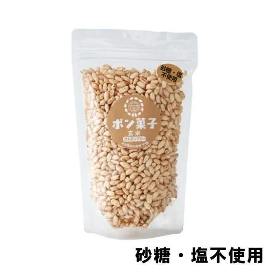 自然豊かで水がきれいな大分県玖珠産のお米を使用しています。 新米の一等米を使用しているのでお米の味がしっかりします。 お米の甘さそのまま、玄米の香ばしさが香るポンしただけの何も味付けしていない無糖ポン菓子です。 7大アレルゲン不使用なのでアレルギーのある方への贈り物にも♪ チャック付きなので湿気に強く、食べたいだけ取り分けられるので小さなお子様のおやつに大活躍していると嬉しいお声もいただいています! 自分で食べる、つかみ食べの練習にもご利用いただけます。 やさしい味付けタイプのポン菓子もございます。