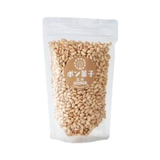 自然豊かで水がきれいな大分県玖珠産のお米を使用しています。 新米の一等米を使用しているのでお米の味がしっかりします。 お米の甘さがあるのでお砂糖も控えめに鹿児島産キビ糖を使い、やさしい味付けにしています。 玄米をポンしているので、食物繊維豊富で、香ばしさも大人気です。 また、塩はミネラルが豊富な宮古島の塩を使用しております。 7大アレルゲン不使用なのでアレルギーのある方への贈り物にも♪ チャック付きなので湿気に強く、食べたいだけ取り分けられるので小さなお子様のおやつに大活躍していると嬉しいお声もいただいています! 自分で食べる、つかみ食べの練習にもご利用いただけます。 ポンしただけの味付けなしの無糖タイプのポン菓子もございます。
