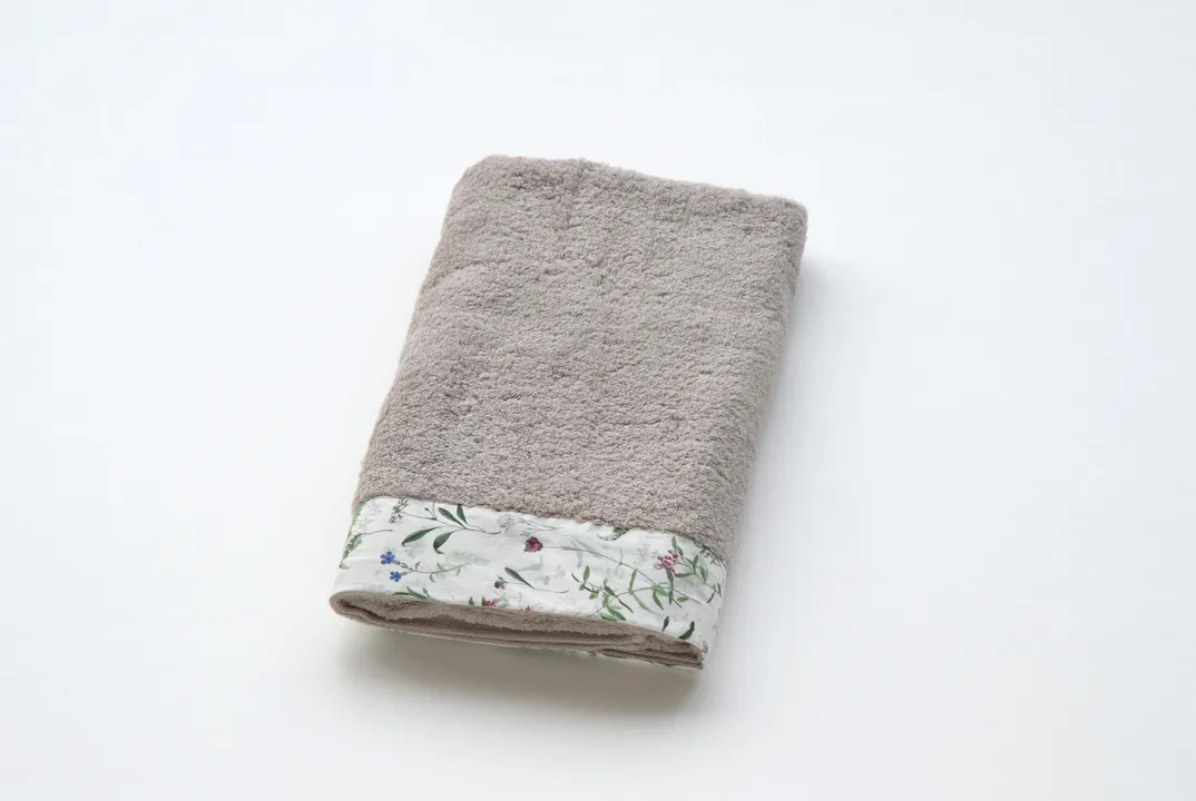 インクジェットの花柄プリントが魅力のフェイスタオル。 34×90cm、綿100%、日本製、 ヘム部分の鮮やかな花柄プリントが印象的な、エレガントでフェミニンなタオルです。しっとりやわらかな肌ざわりと、洗うほどふっくらやわら かくなるタオル生地。可憐さと力強さを感じさせる花柄がよく映えます。 今治タオルブランド認定商品