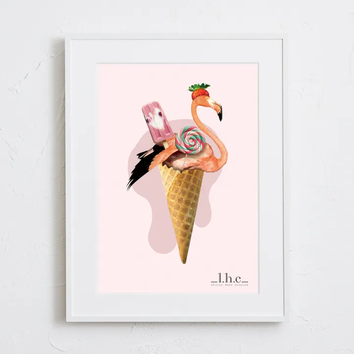 【現代アートポスター】アイスクリーム フラミンゴ アイスキャンディー 大人可愛い 写真コラージュ A4(S) フレームセット:白 29.4×38.4cm