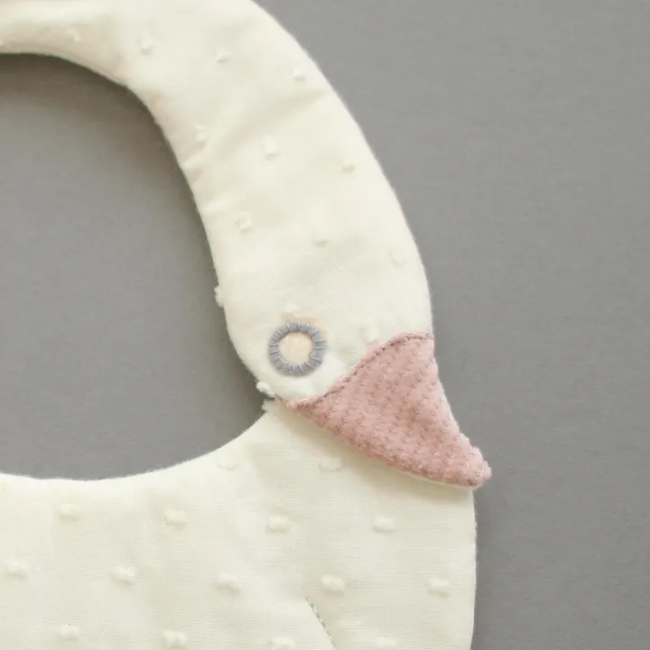 kubomi定番商品 あひるの形をした 〖 あひるのスタイ 〗 オーガニックコットンを使用した 個性的なよだれ掛けです お目目はひとつずつ刺繍を施した 手作りの作品です カラーバランスや、パッケージにもこだわった、出産祝いにおすすめの商品です ………………………………………………………… \ギフト包装について/ kubomiの箔押しとエンボス加工のギフトボックス付きで、出産祝いに喜んでいただけるお品です 箱に入った状態でも 商品が見やすく 店頭での見栄えも意識したデザインになっております [ 商品詳細 ] ○中綿入りでふかふか 吸水率がとてもよい仕様です ○環境に配慮したオーガニックコットンを使用しています ○赤ちゃんの肌にも優しい素材です ○首周りのサイズが2箇所のスナップで調節でき、寝ている赤ちゃんでも留めやすい位置にあります ------------------------------------------------- \オーガニックコットンについて/ キナリ色のオーガニックコットン100%の生地は、「bioRe(ビオリ)COTTON」というインドとタンザニアで展開している bioRe PROJECTから生まれた生地を使用しており、オーガニックコットン素材にすることで、キレイな地球を未来に残していけるよう、少しでもオーガニックコットンの農地が広がっていくよう 願いを込めて、オーガニックコットン素材を選んでおります よく目を凝らすと つぶつぶとした綿カスが付着しています こちらは漂白加工をしていない証になります 汚れではありませんのでご安心ください ------------------------------------------------- [ 寸法 ] ■商品 幅17cm×高さ21cm ■ボックス 幅20.5cm×高さ26cm [ 素材 ] ■表地・裏地…オーガニックコットン100% ■くちばし…綿 100% ■中綿…ポリエステル 100% ------------------------------------------------- [赤ちゃんの スタイ使用時期の目安 ] よだれかけの使用時期には、赤ちゃんによりことなりますが 通常生後5ヶ月頃から使用する機会が増えてまいります ------------------------------------------------- ○在庫のない場合1〜3週間ほどお時間をいただきます。 -------------------------------------------------