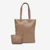 ポーチ付き 本革 縦型ジッパートートバッグ モカ