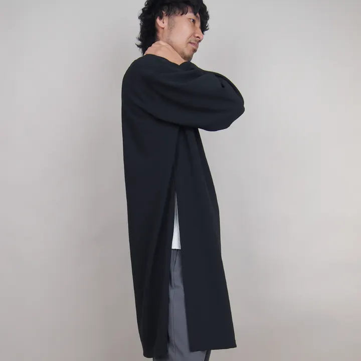 柔らかく馴染む生地と大胆なスリットでオシャレの選択肢が広がるワイドスリーブロングTシャツ。 従来のダンボールニットでは両立しえなかった軽さと膨らみが融合した生地です。 ストレッチ性にも優れながら適度なハリ感があるため、着心地も抜群です。 ボディラインを大きく隠すビッグシルエットでありながら、ボートネックと両サイドのスリットで抜け感があるため、すっきりとした印象に魅せることができます。 ※お色違いも生産可能です。ご希望の際はご相談ください。