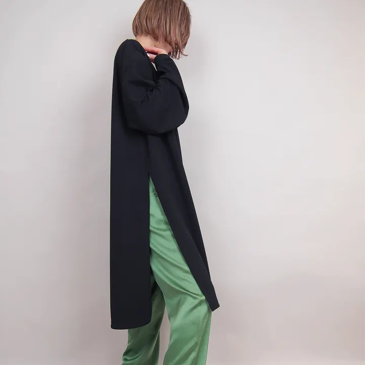 柔らかく馴染む生地と大胆なスリットでオシャレの選択肢が広がるワイドスリーブロングTシャツ。 従来のダンボールニットでは両立しえなかった軽さと膨らみが融合した生地です。 ストレッチ性にも優れながら適度なハリ感があるため、着心地も抜群です。 ボディラインを大きく隠すビッグシルエットでありながら、ボートネックと両サイドのスリットで抜け感があるため、すっきりとした印象に魅せることができます。 ※お色違いも生産可能です。ご希望の際はご相談ください。