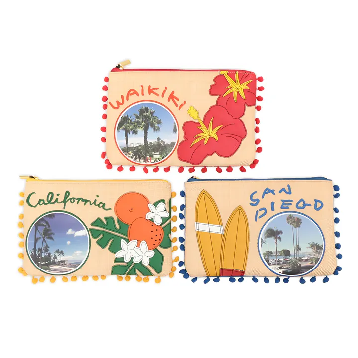 持っているだけでもトラベル気分になれそうな、世界の人気リゾートを鮮やかなカラーのアップリケでデザインしたリゾートアップリケシリーズです。 アウトラインに存在感を際立たせる各カラーのポンポンを組み合わせており、かわいらしくも個性的な仕上がりとなっています。 Bigポーチに比べ小ぶりなマルチポーチは化粧品を入れたり、アクセサリーやピルケースなど使い方は貴方次第。