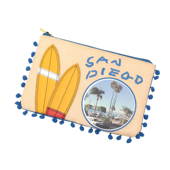 持っているだけでもトラベル気分になれそうな、世界の人気リゾートを鮮やかなカラーのアップリケでデザインしたリゾートアップリケシリーズです。 アウトラインに存在感を際立たせる各カラーのポンポンを組み合わせており、かわいらしくも個性的な仕上がりとなっています。 Bigポーチに比べ小ぶりなマルチポーチは化粧品を入れたり、アクセサリーやピルケースなど使い方は貴方次第。
