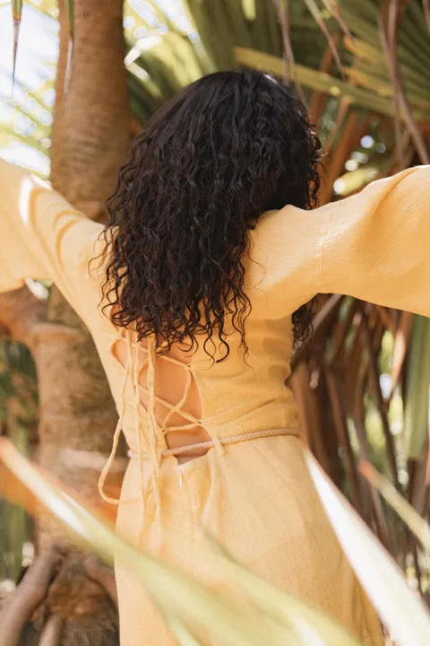 品名:Blooming The Flower Romper 美しい花々にインスパイヤされデザインされた袖のフレアには、"一人一人が抱いている夢が叶い、お花のように咲き誇りますように"という願いが込められています。お花が咲くように、あなたの日々がより美しく、豊かに。そして女性らしさを引き出す大胆なバックシルエットと袖のフレアデザインでボヘミアンスタイルを表現。 ビーチや自然の中でのシーンはもちろんロンパースの上からフレアデニムやパンツ、スカート等を履いて頂くとトップスとしても着ることができる為シティーコーデとしても楽しんで頂けます。 肌見せに抵抗がある日本ではなかなか無いデザインの為、おしゃれが大好きな女性からの支持が多く、 コーディネート次第では肌見せを調整できるうえ、着る度に自分のサイズにあっていく為どんどんと愛着が 湧くという嬉しいお声も多く頂いている人気アイテムです。 特徴1 GOTS認証済みのオーガニックコットン生地をベンガラ(土)で染め、自然素材だけにこだわり、 使い古した洋服は土に埋めてもらうと地球に還る、地球循環型のお洋服です。 特徴2 どの型の洋服も2way~4wayで着ていただけるようデザインを工夫しており 1着あれば様々なコーディネートを楽しんでもらえます。 特徴3 お客様が普段お持ちのインナーを活用できるコーディネートをご提案することで サマーシーズンのみならず、春秋冬でもご愛用頂いています。 特徴4 GOTS認証済みのオーガニックコットン素材を使った高島ちち"みの生地は 使えば使うほどに柔らかくなりその人の肌に馴染むことが特徴で、お肌の弱い方にも 安心して着用いただいています。 特徴5 高島ちち"みは伸縮性のある生地の為、着れば着るほどに自分自身の身体に フィットしたサイズになってくれます。お客様からもこのようなお声を沢山頂いており、 フリーサイズ 展開でも生地の特徴を活かしそれぞれの体型に合わせた唯一無二の お洋服となっています。
