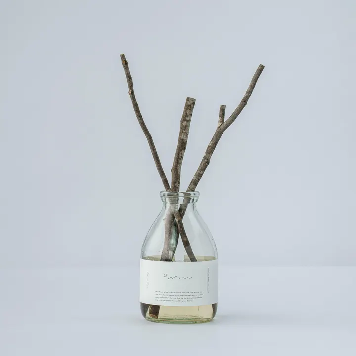 三重県大台町産イヌシデの枝をセットにしたディフューザーです。 天然素材だけで作ったシンプルな香りの芳香機。 お部屋の中で森林浴をしているような、やさしく広がる森の香りと自然素材故の表情の違いをインテリアにしてお楽しみください。 ※専用ビンとイヌシデの枝3本、スティック2本、フレグランスウォーターを箱に入れた状態でお届けします。 ※同梱する“イヌシデ”の枝について資源量によって“アカシデ”の枝に変更してお届けする場合がございます。何卒ご了承ください。樹種名は異なりますが同じシデ類で見た目はほとんど変わりません。 【森林の香り】 大台町産スギ、ヒノキの精油と他天然由来精油を加え、蒸留時に抽出される大台町産クロモジ、タムシバ、カナクギノキ、スギ、ヒノキの芳香蒸留水をベースにした天然香料のみでブレンドしました。 爽やかで奥ゆかしい森林の香りをイメージしています。 ※「森林の香り(微香)」に比べて香りの広がり方が強めのフレグランスです。 ※液体色が天然原料本来の色によって少し黄色がかっています。品質や香りなどに影響はなく問題ございません。 【森林の香り(微香)】 香り成分を全て大台町産の5種の樹木(クロモジ、タムシバ、ヒノキ、カナクギノキ、スギ)から抽出した精油と芳香蒸留水を使ってブレンドしました。 やさしくひろがる森の香りをお楽しみください。 ※「森林の香り」に比べてほのかで優しい香りがするフレグランスです。 ※液体色が天然原料本来の色によって少し白濁しています。品質や香りなどに影響はなく問題ございません。