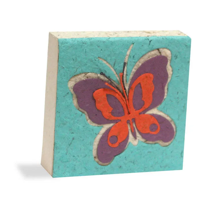 【メモパッド】ゾウのpooからできたエシカルな紙!『 プープーペーパー』 花柄&蝶 Purple/Orange Butterfly
