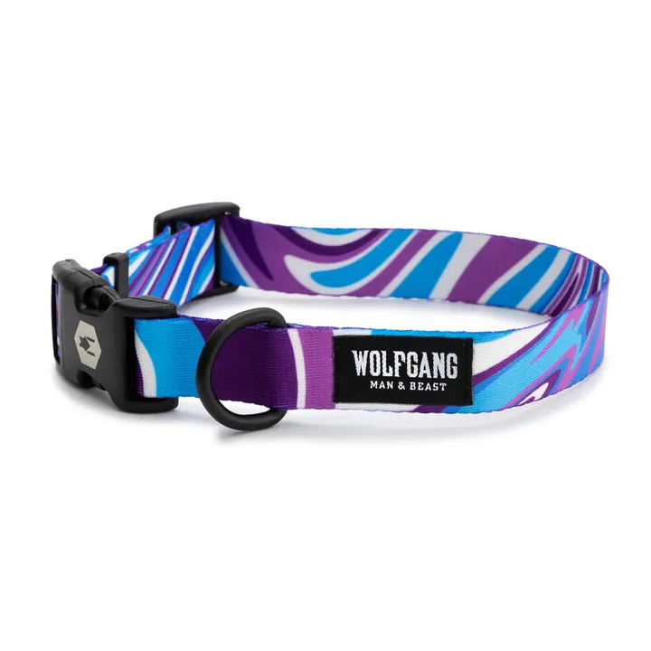 犬用の首輪。 WOLFGANG MAN & BEAST のリードやカラー(首輪)は、車のシートベルトなどにも使われる、強度と柔らかさ、耐久性を兼ね備えたポリエステル100%のウェビング素材を使用しています。 水を吸い込まない、極細のポリエステル糸を非常に密に編むことによって、海や川でも使用可能、汚れや臭いもつきにくい特徴があります。 さらに、ウォッシャブルで洗濯も可能。 アウトドアでの使用にもピッタリです。 製法には、ウェルディング製法( 生地を熱で溶かすことによって生地同士を接着し、強い耐久性を実現する溶着製法 )を採用。 糸による縫い目が無いので、飼い主・愛犬にとって快適な使い心地を実現。通常の縫製による擦れからの糸のほつれが生じることがありません。   WOLFGANG MAN & BEAST のすべてのドッグプロダクトは、こだわりのアメリカンメイド。 ドッグプロダクトは、大切なパートナーである愛犬が、長年愛用できるものであってほしい。 その思いから、選び抜かれた素材を使い、品質にこだわり、WOLFGANG MAN & BEASTのすべてのドッグプロダクトはアメリカ国内で生産されています。 <Sサイズ:対応犬種の目安> ジャック・ラッセル・テリア/パピヨン/マルチーズ/シーズー/ヨークシャーテリア/キャバリア/ホワイト・テリア/ミニチュア・ダックス ...etc <Mサイズ:対応犬種の目安> パグ/コッカスパニエル/シュナウザー/ボストンテリア/フレンチブルドッグ/オーストラリアン・キャトル・ドッグ/スタッフォードシャー・ブル・テリア/ブリタニー/サルーキ/ビーグル/柴犬/ダルメシアン/ウェルシュ・コーギー/ボーダー・コリー ...etc <Lサイズ:対応犬種の目安> ボクサー/ゴールデンレトリバー/ジャーマン・シェパード/ロットワイラー/シベリアン・ハスキー/ブルドッグ/コリー/アメリカン・ピットブル・テリア ...etc 上記の犬種はあくまで目安です。個体によりサイズは変わりますので、購入前に必ず愛犬の実際のサイズを計測して適合サイズを確認してください。 【MarbleWave】(マーブルウェイブ) -アサイー、ブルーベリー、パイナップル、ブルーラズベリーの4つの味が混ざり合い、完璧なおいしさが渦巻いています。目で見て楽しむのに適しています!決して食べないでください!