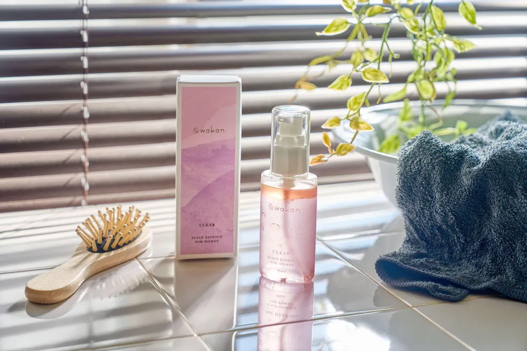 ※こちらはサンプル用です。 和漢植物エキスを配合したスカルプエッセンス 夏季限定のCLEARは暑い季節特有の頭皮のムワっとした感じやニオイにアプローチし、マッサージすることで頭皮に爽快感を与えます。 柑橘やミントなどの植物エキスを加えスッキリとした香り。 サラッとしたテクスチャーでべたつかず、シーンを選ばずに使うことができます。 朝のスタイリング時にも、またお風呂の中でも使用できるので、無理なくココロとカラダを整えられる習慣を。 12種類の和漢植物エキス(保湿成分)を配合。 指圧マッサージに用いることで頭皮をコンディショニングします。 お風呂の中でもご使用いただけます。 ピンクと淡いパープルの2層カラーが特徴的です。 ペパーミントや柑橘系のスッキリした香り。 ギフトにも最適です。