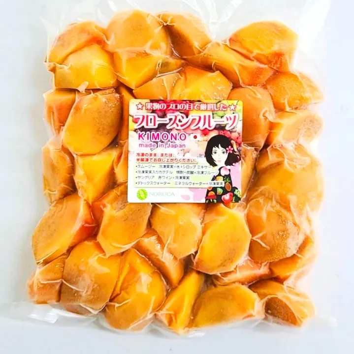 果物のプロの目で厳選した冷凍富有柿(徳島産または福岡産)の短い旬の美味を凍らせました。皮をむき、へたは全てカット済、完熟の富有柿がそのまま入っています。 フルーツの皮を剥き、使いやすいサイズに素早くカット、真空パック加工後、急速冷凍していますので、果実本来の風味と味覚が楽しめます。 スムージー、フルーツカクテル用のフルーツとして、冷凍フルーツは、注目を浴びています。