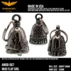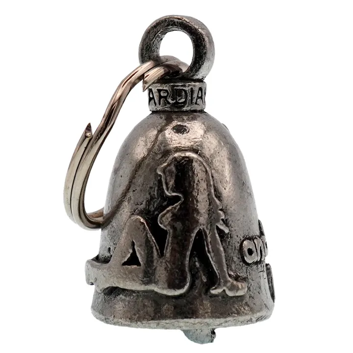 アメリカ製ガーディアンベル社製ガーディアンベルです。 MADE IN USA アメリカ製 交通安全 魔除け 御守り ガーディアンベル アメリカのライダーの間には、事故や、転倒の原因は「道路にひそむ悪魔」によるいたずらだという伝説があります。悪魔は走る者に悪戯やトラブルを運んできます。このベルは美しい音色で悪魔たちを追い払うと言われ愛されています。そんな悪魔のいたずらを防ぎ、御守りとなるのが、守護者のベルという意味を持つガーディアンベル。 日本でも鈴の音(ね)は神道では魔除けの音と言われています。ピューター製の鈴でいい音色でガーディアンベルはデザインも様々あります。 またガーディアンベルにまつわる伝説として、プレゼントとして送られたベルの効果は、自分で手に入れたものの2倍になると言われています。 それゆえに彼氏・彼女・友達・家族へのプレゼントとしての人気も非常に高まっています。 シルバーアクセサリーのようにおしゃれに装着できて素敵な音色を奏でるガーディアンベル。 バイカー以外にも自転車や旅・交通安全のお守りとしてお使いいただけます。 カバン・ランドセル・キーホルダー・ペットの首輪等に付けてお使いください!! ※タイラップ等でバイクのフレームにも簡単に取り付けできます。 アメリカンモデルだけではなく、旧車ファン、レプリカライダーまで、さらにバイクだけでなく、自転車や車にもピッタリな御守りとなっています。 アクセサリーとしても人気で、アイディア次第で車体だけでなく、キーホルダーや鞄など、どこにでも付けておしゃれに楽しめます。