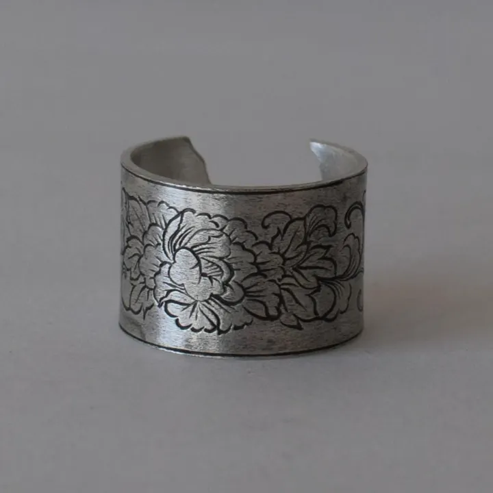 優雅な美しさと精錬されたデザインが融合したPeony Ring この指輪には牡丹の花の繊細な彫刻が施されており、切れ目も特徴の一つです。 マットな仕上げが施されており、その輝きと耐久性は長く持続します。 ボタンの花は富と幸福の象徴とされ、身につける人に幸運をもたらすとされています。 一つ一つ手彫りのオーダーメイドで制作いたします。 goldご希望の方はお問い合わせください。