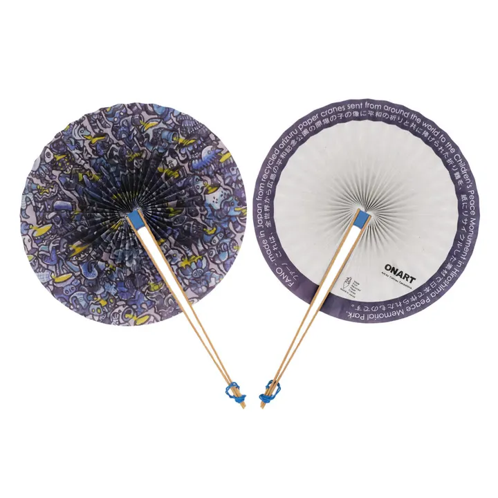 FANO(ファーノ)は、広島に贈られた折り鶴の再生紙を利用してデザインした扇です。 日本はもとより世界中から届けられる思いのこもった千羽鶴。 FANOとして生まれ変わった折り鶴たちが、平和の風を世界中に届けてくれるよう、わたしたちは願っています。 ONART(オンアート) Ver.は、「アートを身近に」をコンセプトに、アーティストの活躍する場や機会を世界に向けて発信するプロジェクト「ONART (オンアート)」が実施する、公募によって選ばれた100人のアーティストが描く、生活を彩る「100人のARTノート」の企画に賛同し、FANO賞として4作品を選考して製作いたしました。 扇部分は折り鶴再生紙で作られており、持ち手部分及び持ち手紐を固定する留め具の素材はヒノキの間伐材。側面にはFANOの刻印入りです。扇部分と同じ折り鶴再生紙でつくられたパッケージが付いています。 【アーティスト】 小楠 アキコ「ハッピーひまわり畑」 Keiko Yamasaki「森の鼓動」 たかしま ゆきなお「偶像たちの諸行Ⅱ / Acts of idols Ⅱ」 MCT「楽しい気分になるノート」