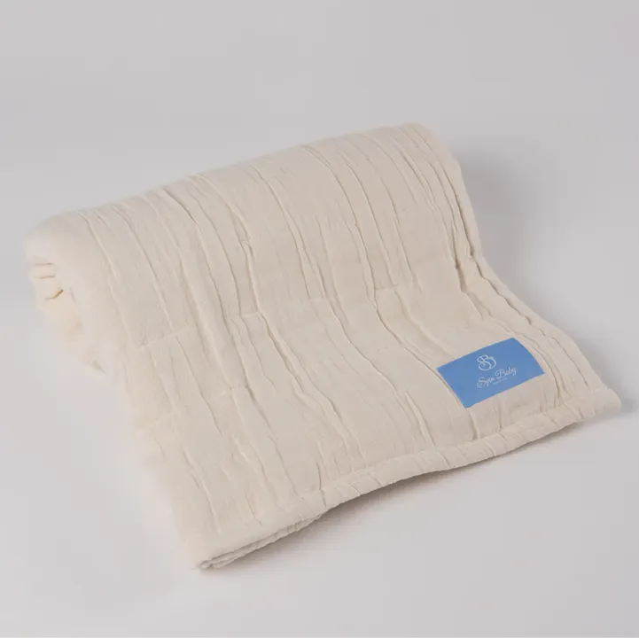素材にこだわったオーガニックガーゼ生地を8枚重ねて仕上げました。100%オーガニックコットンを使用しています。 人にも環境にも優しく、デリケートなお子様の肌にも安心です。 洗うたびに増すふんわり感と、とろける優しい肌触り。 水分をよく吸収し乾きやすいので夏でもムレにくく、適度な温度を保ってくれるため年中快適にお使いいただけます。 熟練の職人が丹精込めて、1日に10枚しか作れないブランケットです。 当ブランドで人気のある製品になります